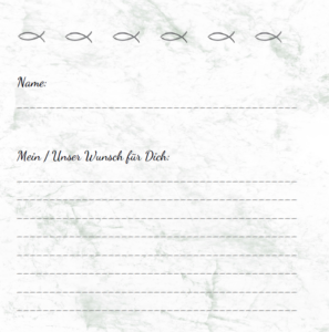 - 11 Doppelseiten für Gäste mit Platz für individuelle Wünsche und ein Foto zum Beispiel mit dem Konfirmationskind