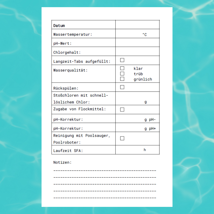 Der Poolpflegeplaner ist das perfekte Geschenk für alle Poolbesitzer. Den neben dem Spaß beim Baden steht die Wasserpflege des Pools an erster Stelle.